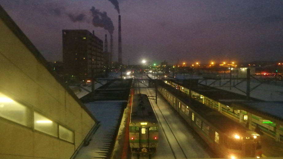 18時53分、列車は旭川に向け出発した。例年だとここまで来ると正直消化試合のような気分になってくる。気持ち的には半分旭川に足を突っ込んだように感じる。「あ~正月休みも終わりだな~。あとはこのまま現実世界へと戻って行くだけだなぁ~」と。今年は一人でなくお供が2人いるからかもしれんがまだ楽しい気持ちでいられる。明日は旭山動物園で夜はフェリーだ。久々の船旅も楽しみである。
