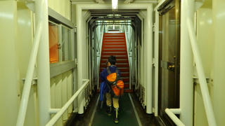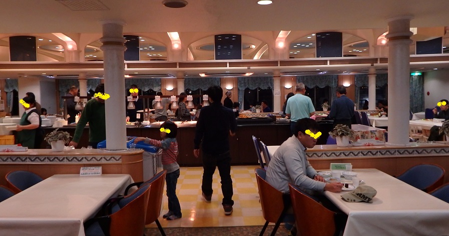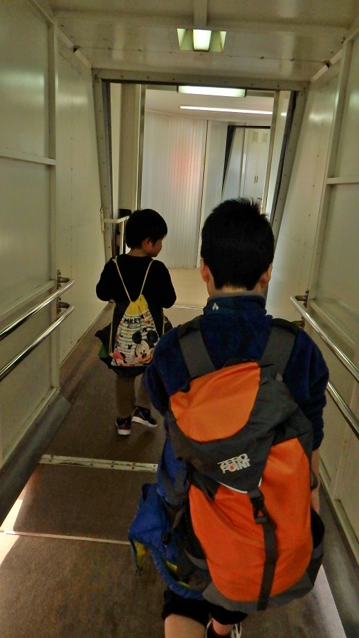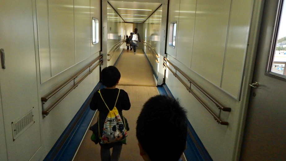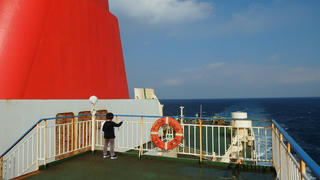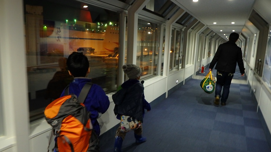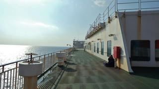 一度寝台に戻り下のチビと船内を探検する。甲板に出たり色々歩き回る。船はすでに港を離れ周囲は真っ暗。街の明かりは見えない。その後売店やチャイルドルームなどを周って再び寝台に戻る。寝台に戻ると上のチビが映画を見たいというのでシアタールームに向かう。インディージョーンズ(だったかな?)を見るも途中で寝てしまった。最終的には途中でみんなで退場し寝台へと戻った。その後風呂に向かうもチビどもの小競り合いが始まり下のチビが上のチビに殴りかかる。これは下のチビが悪いと引き離しにかかった時に僕の小指が下のチビの顔をひっかいてしまった。すると下のチビは大きな声で泣き出した。顔を見ると目の下が傷になっていた。わざとではないにしろ「しまった」と思い謝って謝って謝り倒した。かわいそうなことをしてしまったとととてつもなく後悔する。そうしているうちにも入浴時間のリミットである22時半が迫ってくる。とりあえず風呂には入れて寝かさねばならんので風呂場に行くとなんと入口に本日終了的な看板が出てた。しかしまだ22時半には数分ある。ということで無理くり中に入った。時間がないのでぐずるチビをなだめて浴室に入ると中にはまだ数人の人達が入浴中。時間がないのでさっさと体を洗おうと腰を掛けるとなんと隣の人の背中に桜吹雪が舞っているではないか。「あちゃ~よりによって変なとこ座っちゃったな~」と思いながらも下のチビの体を洗う。しみるので痛いというけど謝りながらなだめながら体を洗い湯船にざぶんとつかり風呂を出る。外には清掃の方が掃除を始めていたけど「すんません」と謝りながら急いで服を着せる。清掃の方の「慌てなくてもいいですよ」って言葉がホントにありがたかった。その後寝台に戻って子供らを寝かせた。その後は一人でぷらぷらしようかとも思ったけど僕も疲れてしまってなんだかんだですぐ寝てしまった。