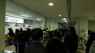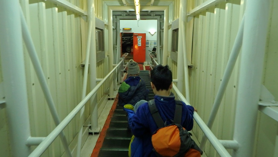 その後ゲームコーナーとかで遊んで寝台に戻る。そしてごろごろしてたらあっという間に昼になり、ご飯を食べたら下船の放送が始まる。乗船時間は19時間ちょっとで小樽ー舞鶴とあんまり変わらないけどこちらの方がなんか忙しなく到着するように感じる。