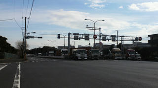 予想はしてたんだがこの陸橋の時点でコンテナヤードに入ろうとするトレーラーが列をなして並んでいた。やっぱ土曜はだめだな。