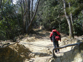 で、14時58分、高尾山口の駅を出発。ちなみに今回はCWXを履いてない。破れちゃってその修理に出す準備中である。プロトレックはバンド交換でビックカメラに渡し中。あ、そういやこないだ交換が終わったって電話かかってきてたな。とりに行かなきゃ。デジカメも持って来ていない。写真はケータイで撮ろうかと思ってたけどケータイは家に忘れてきた。これじゃもしものことがあっても救助も呼べんではないか。スタートは15時、ケータイも持ってない。これでなんかあったらど素人のおっさんが超軽装で山に入ってそのまま遭難・・・って感じじゃねーか。まぁ高尾山で遭難とかないけどね。足くじいてもゆっくり降りればいいや。ヘッデンだけは持ってきた。