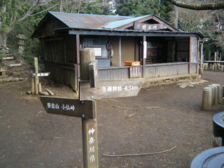 で、城山に到着。お茶屋さんには登山者が唯一人。なんか飯食ってた。あとはお茶屋さんの人たちが店じまいしてた。