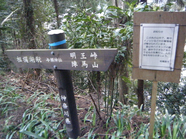 で、明王峠に到着。時刻は15時50分。相模湖方面に降りる人はいたけどこのさきへ進む人はさらに少ない・・・っつーかいるのかいないのかわからん。しかしまた出直すのは面倒だ。もうそろそろ高尾山を卒業したい。というわけでヘッデン覚悟で陣馬山へ進むことにした。