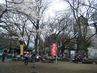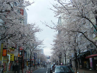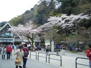 ケーブルの駅前。都心の桜は散ってしまったけどこちらはまだ満開である。