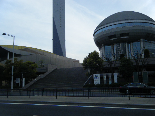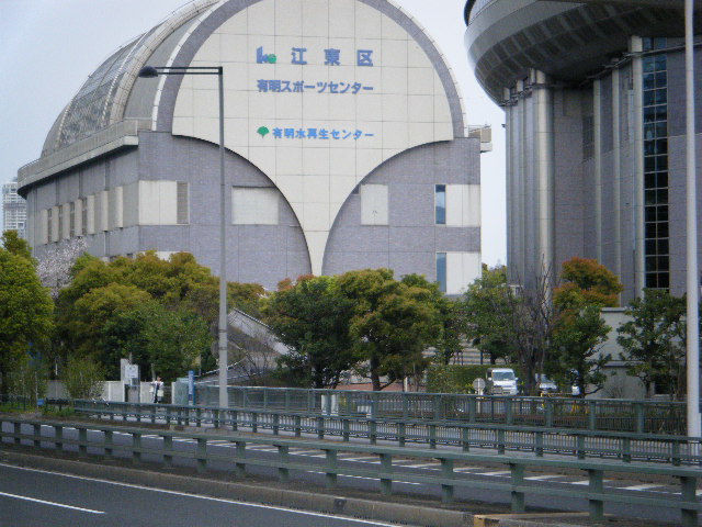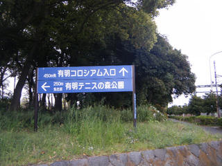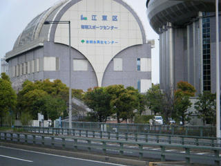 有明コロシアムに到着。おぉ~立派だ!!!画角が狭くて端から端まで入らん。ここであの「東レパンパシフィック」とかやってんだな。錦織圭とか伊達公子・・・じゃなかったクルム伊達公子とかがここで試合をするんだな。