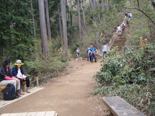 ひとまず高尾山山頂方面へと向かう。これまでより時間が早いということ、暖かくなって気候が良くなったことなんかもあって先月から3回目の高尾山は最高に人が多い。