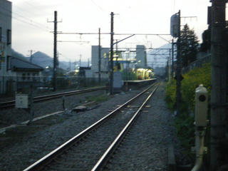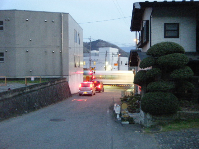 踏切より。右手にすぐ駅のホームが見える。