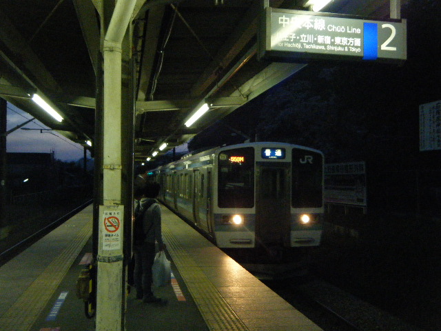 18時23分、藤野駅に到着。いや~コースタイム通り。トイレタイムがあったとはいえ情けない・・・。つーか何で上りは登れるのに下りはこんなに遅いんだろうか???ちんたら歩いてるつもりはないんだが・・・。
