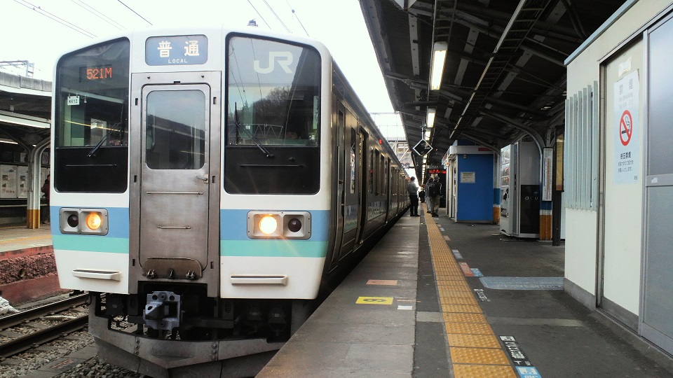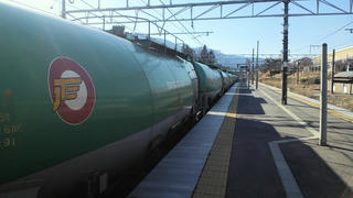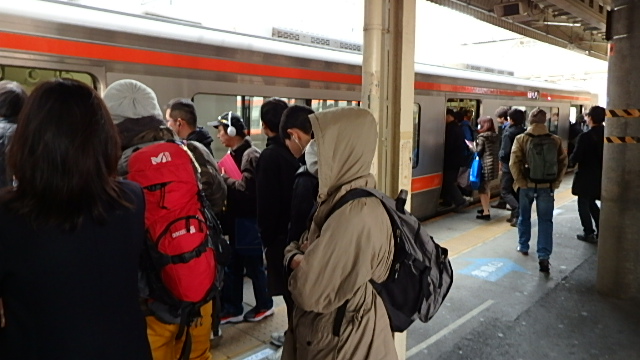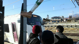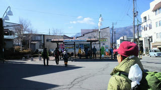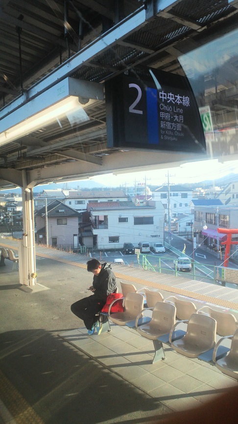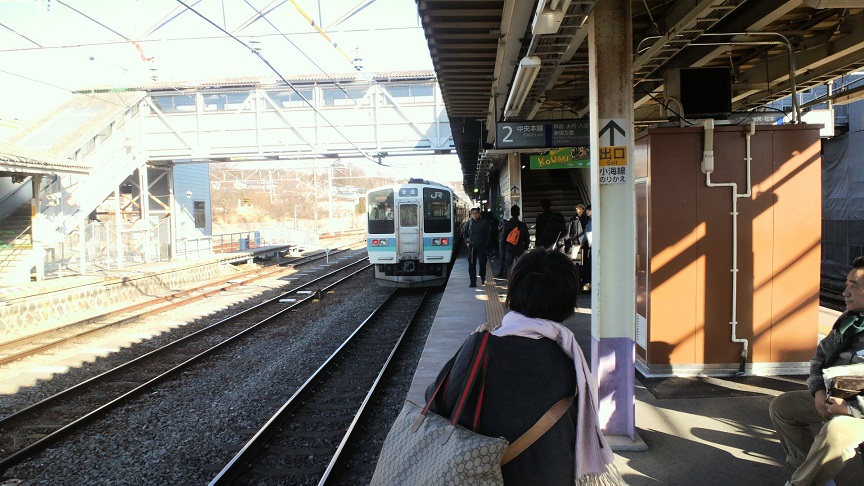 しばらく停車していた貨物列車を見送るりその後やってきた塩山行きの列車に乗り込む。車内は暖かいし今日は朝も早かったのでうつらうつらして気がつけば小渕沢に到着。ここで多くの乗客が下車。周りも僕と同じく新宿行きの快速に乗る人々が多い模様。みんなよく調べてんなぁ。