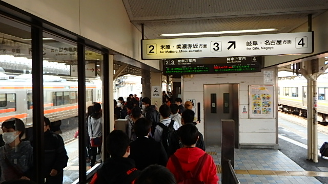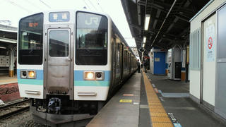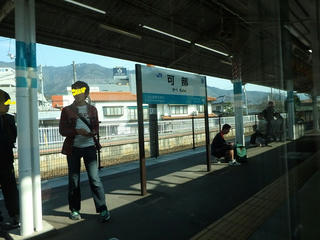 8時38分、終点の甲府に到着。乗り継ぐ8時53分発の松本行きの座席を押さえて朝の生理現象解消タイムでトイレに向かう。これがまたなかなか個室が空かなくて再び列車に戻ったのは発車間際の8時50分だった。
