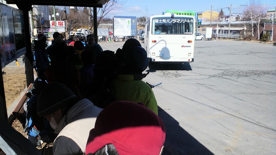 15時、バスは富士見駅に向け出発した。行く時はそれなりに満員になったので帰りの便も混み合うのかと思いきやそれほどでもなかった。