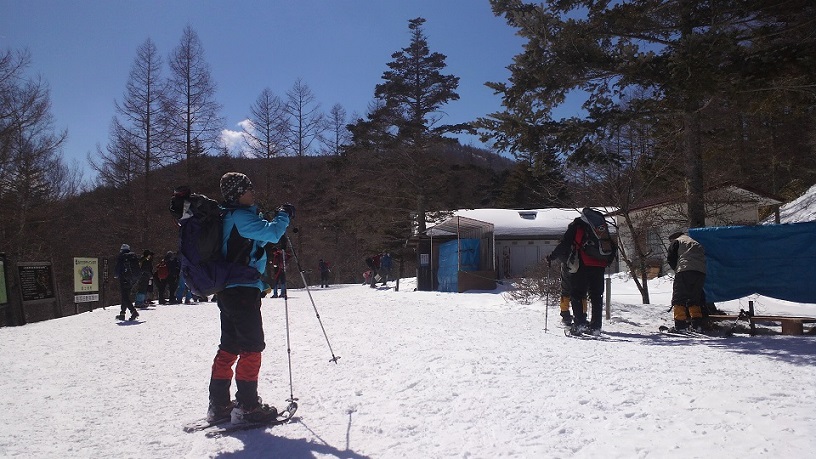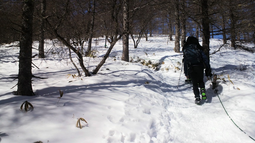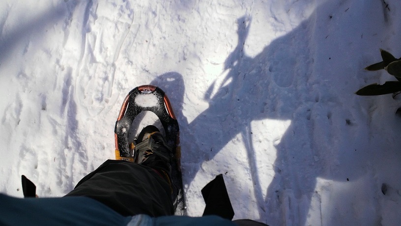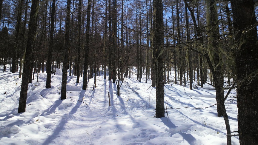 久々のスノーシューの感触だ。東京に持ってきたけどこの3年間、一度も使わなかった。しかしぶっちゃけスノーシューじゃなくても普通に歩ける。季節は3月。雪は十分締まっている。でもいいのだ。スノーシューを履きたいだけなのだ。