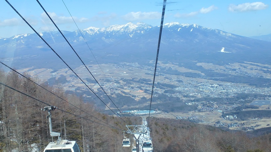 ゴンドラに乗り込みほんとの下山である。八ヶ岳を正面にみながら標高を下げる。いや~入笠山、景色の素晴らしいとてもいい山だった。