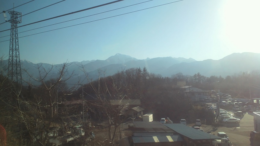 列車は松本に向け出発。そこでもうつらうつらしながら過ごす。目が覚めると雪山が見える。宮脇俊三先生の本の中で何度か読んだことのある中央線の風景だ。