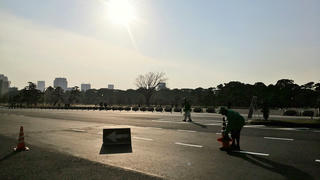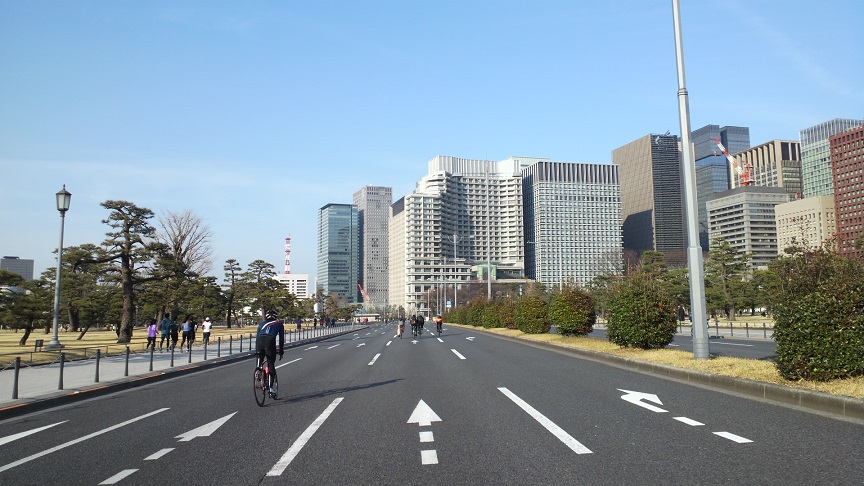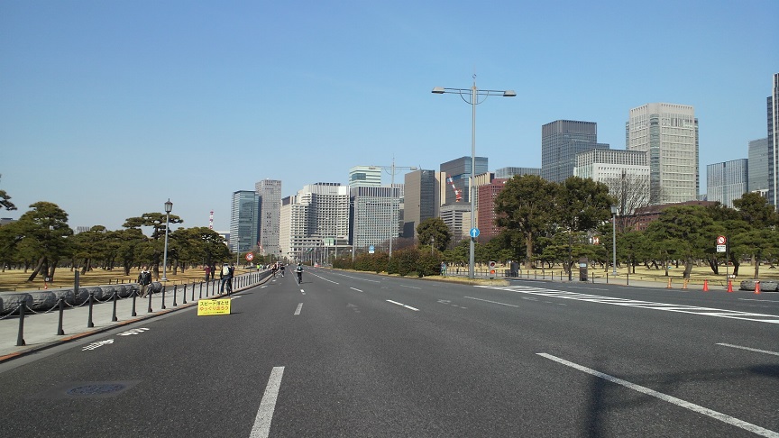 東京に来てから3年たつけどロードに関しては大井ふ頭ばかり走ってきた。しかしあそこは正直走っていると気が滅入る。殺風景な港湾エリアに加えて風が強いともう最悪だ。トレーニングにはいいかもしれんが日曜の昼下がりに一人で走ってたりするとなんとも言えん気分になる。しかし今日は都心でみんなと走る。ど平坦のお気軽コースである。