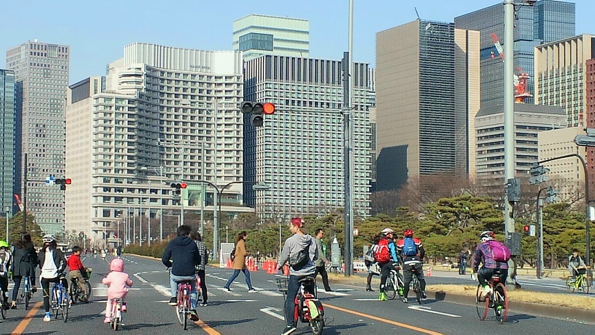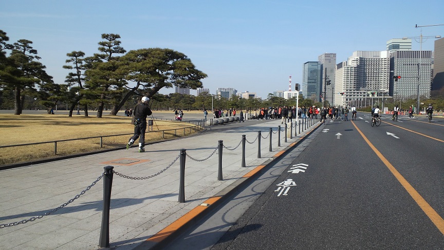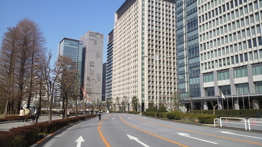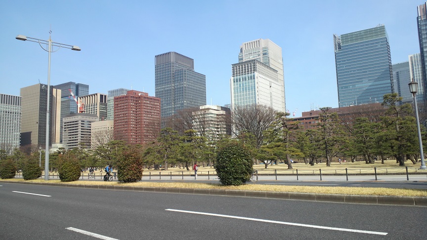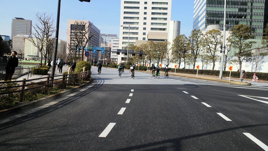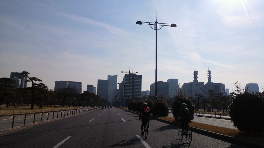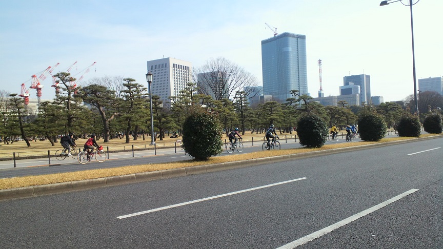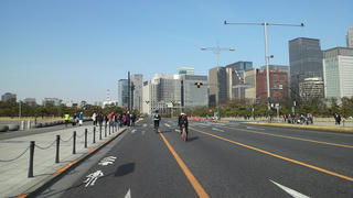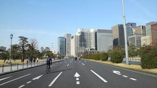 このパレスサイクリング、コースは1周3kmほどのところを周回魚のごとくグルグル回る。平川門のところでUターンして再び祝田橋を目指す。途中左手に東京駅の丸の内口を眺めたり「東京を走ってるなぁ~」と実感できるコースである。