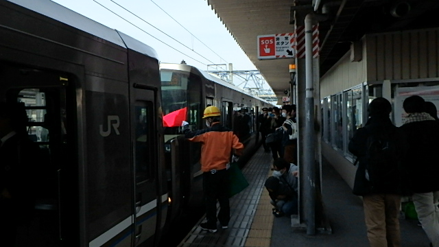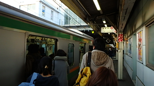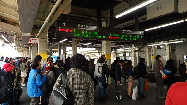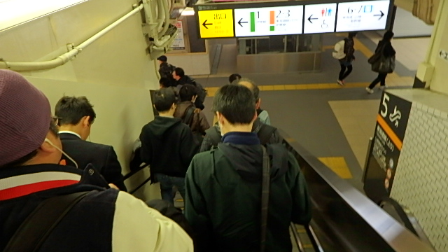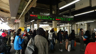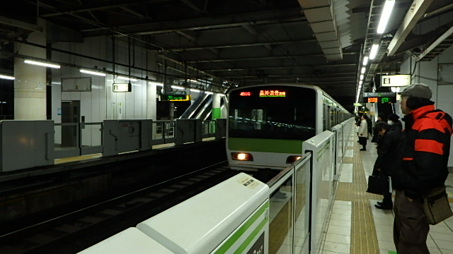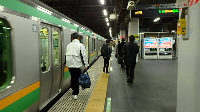 家で時間がなかったので電車の中で乗り継ぎを詳しく調べようと思っていたんだがiPadを忘れたのでそれもできなくなってしまった。気持ちの上では1本早い列車に乗って東京発の中央線で座って高尾まで行こうと思ったんだが、それもできなくてこの列車で東京駅で降りていいのかどうかもわからんので安全策をとって神田まで行った。神田に着いて電光掲示板を見ると乗りこむ列車は5時43分発。これなら東京駅で十分に乗り換えできたではないか。なんで神田乗り換えだったんだ???