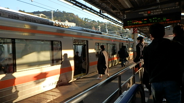 そしてバスは富士見駅に到着。15時36分に塩山行きがあるのでこれに乗ることにする。駅に置いてある時刻表でその後の時刻表を調べると途中の小渕沢から臨時の新宿行きの快速が出ていることを発見。しかも今日からの運行だ。先週来ていたらこれには乗れなかった。これに乗れば新宿まで乗り換えなし。しかも19時前に新宿に着ける。ラッキー!!!しかしここで違う方にも食指が動く。「いけるかな?」と甲府から身延線への乗り継ぎを見ると17時21分発の富士行きというのがあった。これに乗って身延線を経由して東京まで戻るという手もある。非常に魅力的ではあるんだがこれだと家に着くのが23時くらいになってしまう。それに甲府発が17時過ぎということは程なくして暗くなって景色を楽しむことはできない。そして考えた結果今回は小渕沢からの新宿行きの臨時快速で素直に帰ることにした。おそらく車両はダブルデッカーの215系電車だと思われる。一度相模湖から高尾まで乗ったことがあるのだが非常にグレイトな車両で特別料金なしでこんなのに乗れるなんてと感動したもんだ。それを今日は始発から終点まで乗り通せる。乗車時間は2時間半ほど。こんなチャンスはなかなかない。なんといっても快適だし早いしでなんかワクワクする。ということで小淵沢で下車することにした。