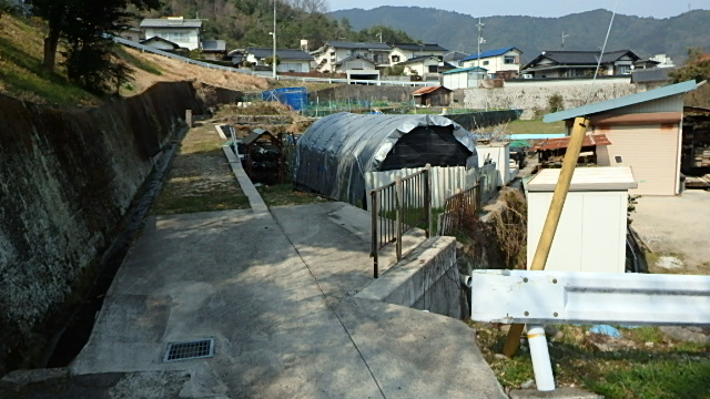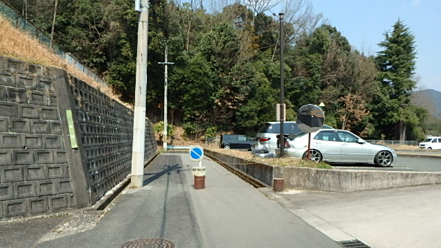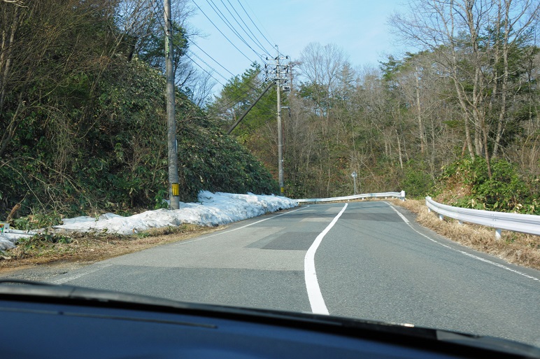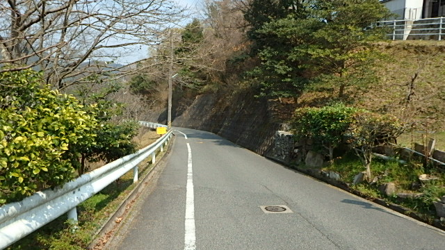 おぉ~ここ舗装されたのか。しかもガードレールまでついている。昔は未舗装の土の道だった。