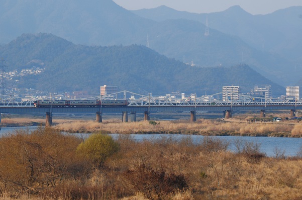 可部を出発した列車は中島を過ぎ太田川にさしかかる。