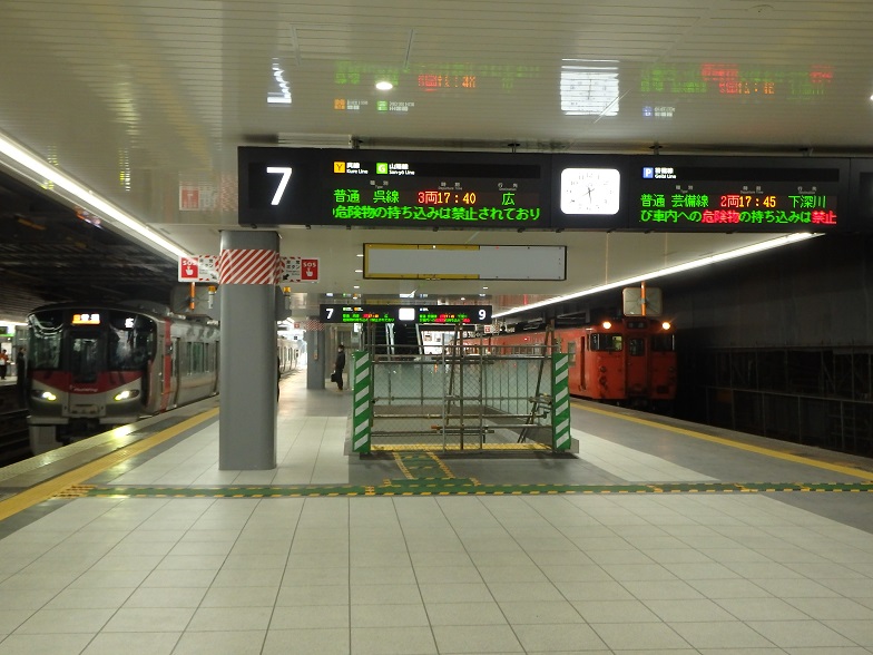 駅の入口の前に陣取りこれからの予定を考える。やりたいことは色々ある。しかし時刻は14時半をまわった。全部やるには時間的に無理だ。ひとつづつ検証する。まずは三江線の宇都井駅で撮影。これをやるには今すぐここで引き返さねばならん。よって却下。続いて芸備線での撮影。中山隧道とネットでよく出ている戸坂の踏切。これも時間がないので却下。しかし玖村ー下深川間の3連のトンネルの写真は撮りたい。安芸矢口方面の道路をアンダークロスするポイントは現場に着いてから行くか行かんか考えよう。お次は玖村にどうアクセスするか。気持ち的には梅林で降りて高瀬堰を渡って向いたい。あのあたりには色々思い出があって今回行かなければ次にいつ歩けるかわからない。しかしそうするとまだ見たことのない新白島の駅に行けなくなる。時間が許せばこの時間からでも三次まで芸備線を乗ってみたいという気持ちがあるのでそうなれば玖村から乗ることになり新白島には行けなくなる。まぁこれは電車に乗ってからどうするか決めよう。