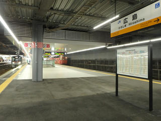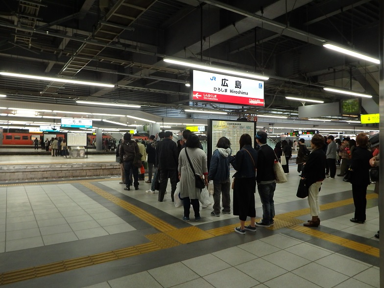 列車は横川に到着。僕の中では横川は都会だった。この駅は可部線と山陽線が乗り入れていて横には新幹線も走り、さらに駅前には広電の路面電車も乗り入れておりバスのターミナルもあり商店街もある。小学生の頃はほんとに都会に見えた。中学生の頃は広大の大学病院で手術をしてその絡みでこの駅から大学病院行きのバスに何度も乗ったもんだった。ここの駅前も可部みたいにきれいに整備され昔とは雰囲気が変わってきれいになった。広電の電停が若干鹿児島駅前に似ていると思うのは僕だけか???