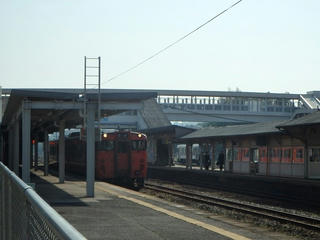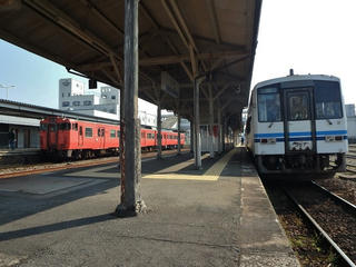 昔、三江線を乗り通したときは三次を発車した後芸備線と並走した記憶がある。でも今の配線では不可能だ。左側の途中で途切れている線路、あれが昔は本線とつながっていたんだろうか?つーかつながってたんだな。そうじゃないと無理だもん。