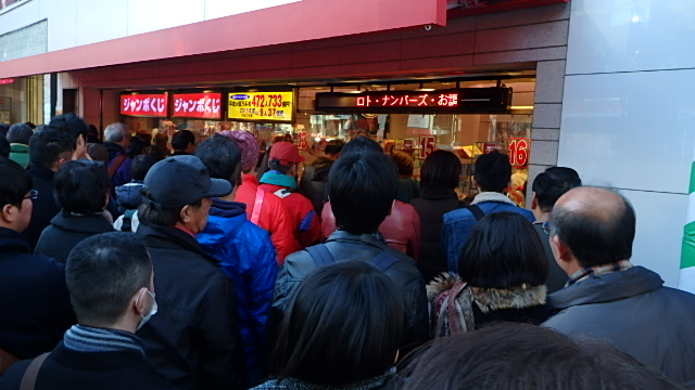 そして電車は有楽町に到着。すぐにチャンスセンターには向かわずビックカメラへブラ散歩。適当に売り場を流していざチャンスセンターへ。マリオンの横に行列ができており「まさか・・・」と思うとそのまさかで・・・
