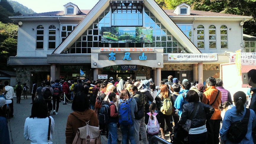 いつものごとく新宿で京王線に乗り換えて10時53分、高尾山口の駅に到着。紅葉狩りなのか何なのかとにかくいつも以上に人のが多い。とりあえず混雑を避けホームのベンチで弁当を平らげる。