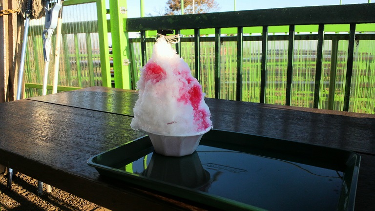 そしてお待ちかねのかき氷が到着。城山のかき氷には及ばないけどここのかき氷も高々とそびえている。いいねぇ。味の方も非常においしゅうございました。